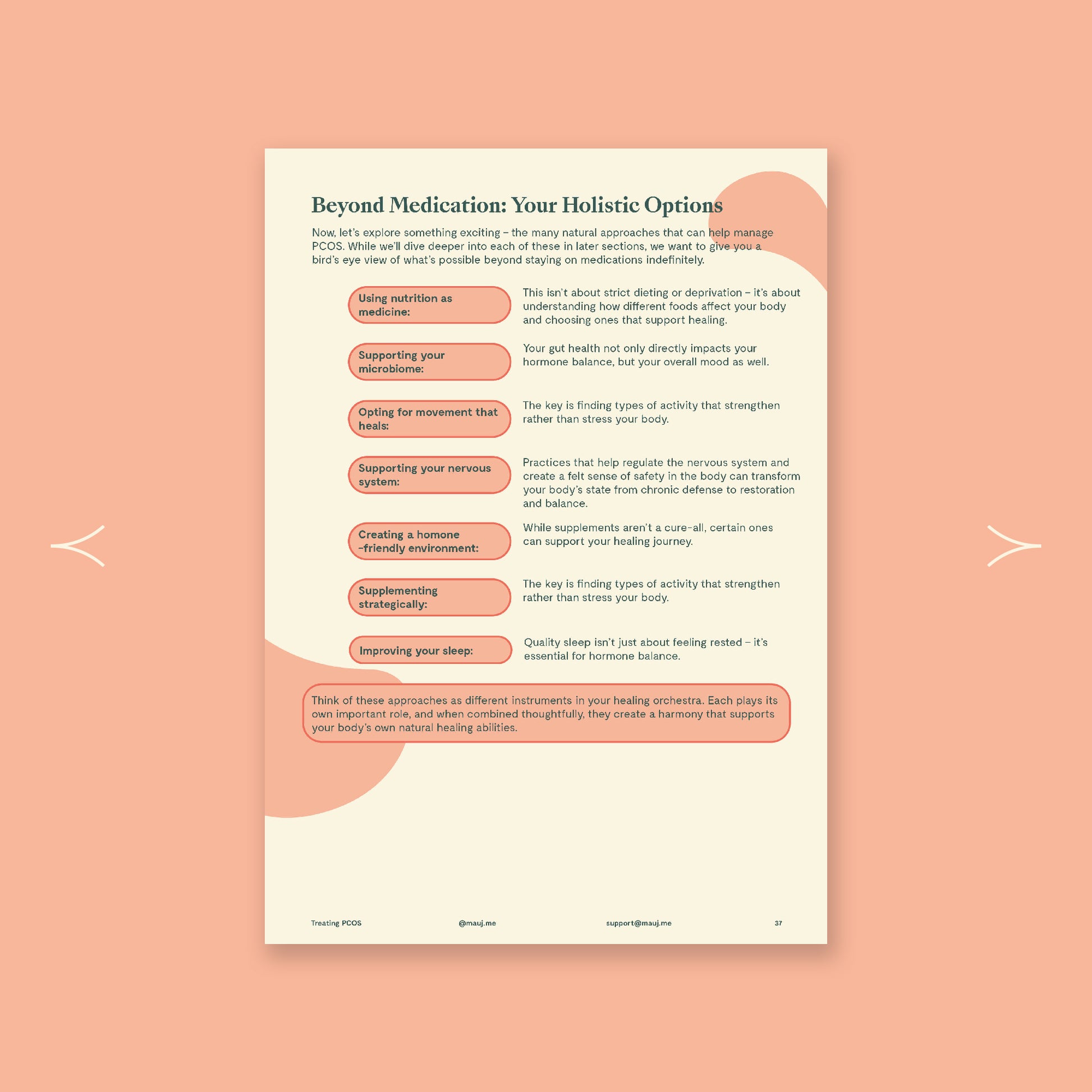 إن التعامل مع متلازمة المبيض متعدد التكيّسات لا يقتصر على معالجة أحد الأعراض فحسب، بل إنه يشمل معالجة جسمك ككل. يتبنى هذا الدليل نهجًا شاملاً، يربط بين الهرمونات والتغذية والحركة والصحة النفسية. من خلال التركيز على الأسباب الجذرية، وليس فقط الأعراض، ستكتسبين فهمًا أعمق لسبب معاناتك من أعراض متلازمة المبيض متعدد التكيّسات، وستفهمين كيف يمكن للتغييرات التي تدخلينها إلى نمط حياتك أن تعمل بتناسق تام لدعم صحتك.